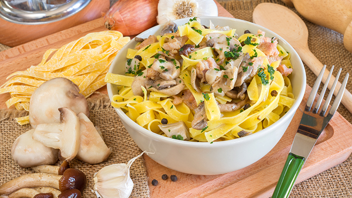 Tagliatelle funghi e salsiccia